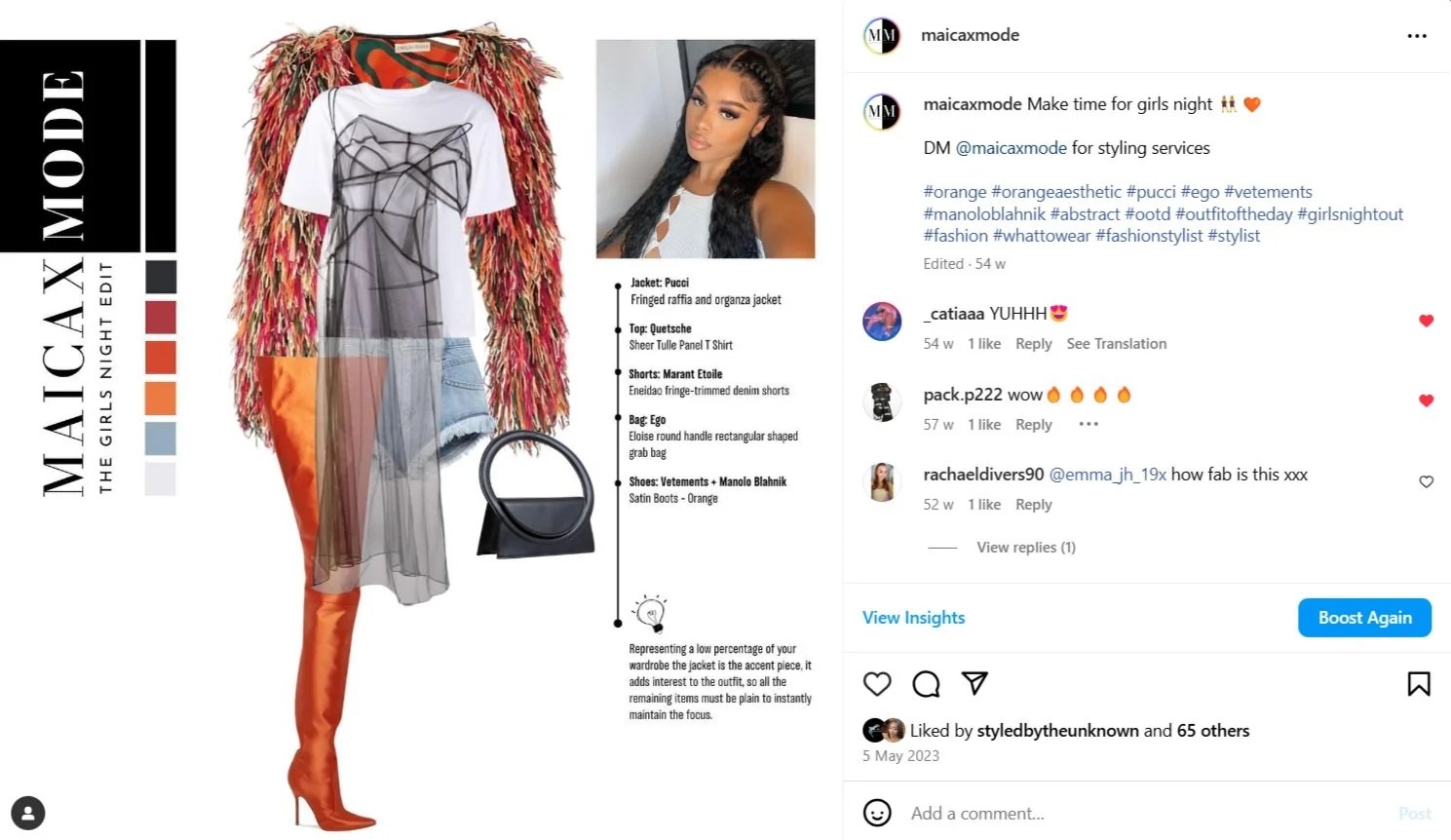 Maicaxmode is a self curated virtual styling account that has been up and running for 2 years, we believe in the transformative power of style. Our mission is to help individuals express their unique personalities and enhance their confidence through curated fashion choices. With a keen eye for detail and a passion for the latest trends, we offer personalised styling services that cater to diverse tastes and lifestyles.